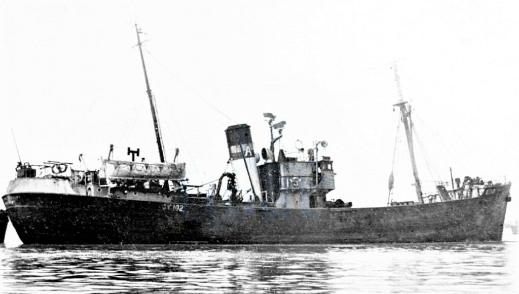 The trawler Westella had also followed Blackburn Rovers into the minefield and as she was picking up the survivors from Blackburn Rovers she hit a mine blowing off her bow.